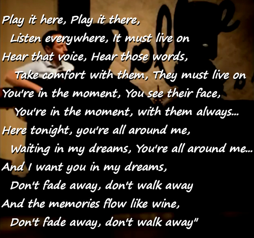 Until we reach that sublime time, we can find solace in remembering those near to us who we have lost in "The Song Must Live On" as captured in the lyrics and music below.